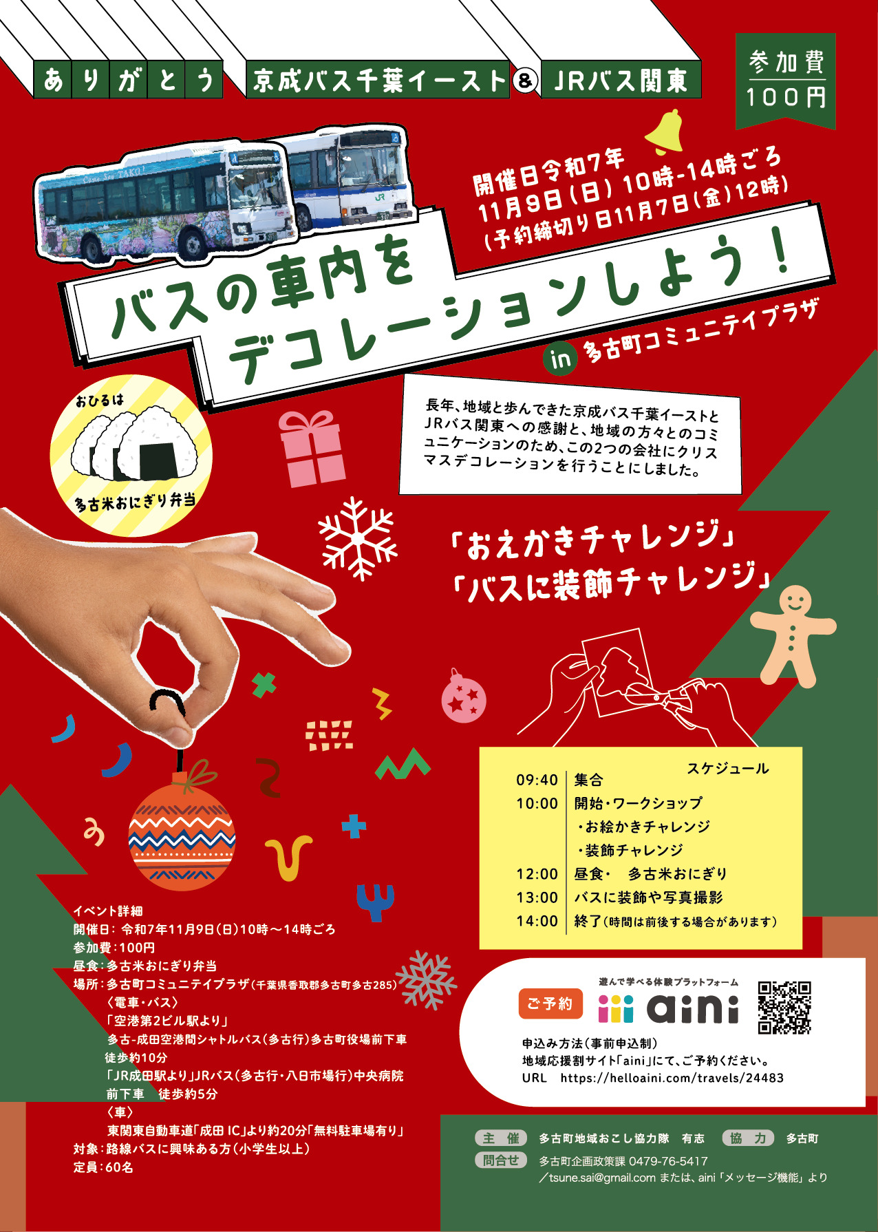 クリスマスの時期が近づいてきました。多古町地域おこし協力隊と一緒にバスをデコレーションしませんか?
