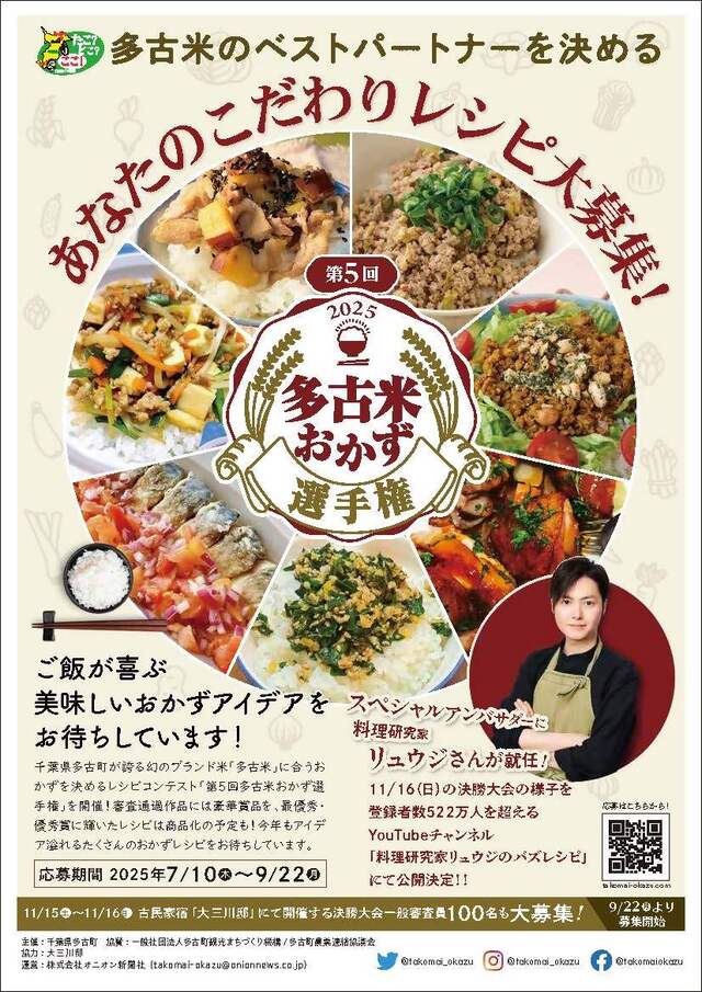 地域ブランド米である多古米に合うおかずを募集し、優秀作品を決めるレシピコンテスト『第5回多古米おかず選手権』の決勝大会が11月15日(土)・16日(日)に開催され、応募総数175品の中から、最優秀作品1品・優秀作品3品が決定しました!