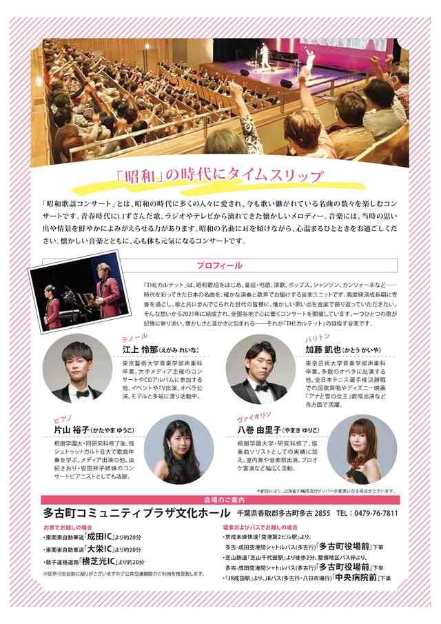 THEカルテット:加藤凱也(バリトン)、江上怜那(テノール)、八巻由里子(ヴァイオリン)、片山裕子(ピアノ)