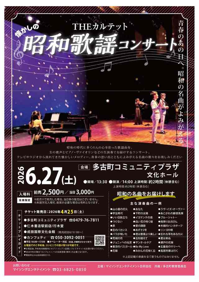あの時、街角に流れていた曲。あの日、友と歌ったメロディ。実力派の音楽グループ「THEカルテット」が懐かしの名曲と共に、あなたを若かったあの頃に誘います。
